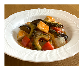 苦瓜(ゴーヤ)。多くの家庭では、暑い夏に向かって苦瓜の栽培で「緑のカーテン」を作っています。太陽が照りつける日は、日除けになります。また身体にこもった熱を冷ます作用があるので、料理にして食べれば熱中症や夏バテ、暑さによるイライラから開放される食材なので、お勧めです。