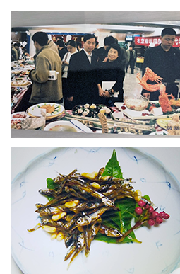 ①2006年「中国薬膳美食文化祭」薬膳コンテストにて東岳泰山薬膳杯「金牌菜」を授与され、中国滋補養生薬膳名師」の名称を取得されました。どのような薬膳を出品され、どのような賞でしょうか。 2004年3月中国薬膳研究会主催「第三回中国薬膳料理コンテスト(園丁園杯)」に本草薬膳学院から初めて5名参加、中国全土、日本、韓国、台湾から211名の参加者でした。点心類に大和芋、ゆり根、白豆、粉末紅麹を材料にした練り切りを「春風桜花」と銘し出品致しました。その後、2006年3月山東省済南に於いて、「中国薬膳美食文化祭」が開催され、薬膳コンテスト128名の参加で行われ東岳泰山薬膳杯「金牌菜」を授与、「中国滋補養生薬膳名師」の名称を 頂きました。その時のメニューです。