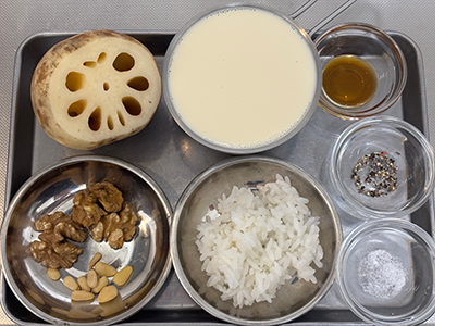 素材名:豆乳、蓮根、粳米、くるみ、松の実