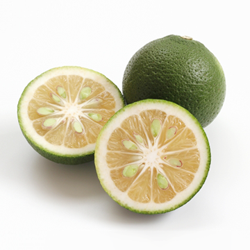 カボスは柑橘類の一種で大分県の特産品。スダチよりもひとまわり大きい。果実は緑色のうちに収穫するが、熟してくると黄色くなる。スダチ、ユズに比べると酸味が強いのが特徴。独特の香りを持ち、地元大分では刺身や焼き魚等の薬味として利用され、あるいは鍋料理のポン酢の物等にも昔から利用されており、また清涼飲料水やお酒、お菓子等にも幅広く利用されている。最近ではカボスを加えた飼料で魚の養殖も盛んに行われてきている。漢方ではこの果実を乾燥させて青皮としても使われてきた。また、貝原益軒の【大和本草】には皮乾燥させ燻して蚊よけに使うとの記載あり。カボスには疲労回復に良いクエン酸が豊富に詰まっていて低血圧や動脈硬化を防ぐという効果も期待できる。カボスに含まれるクエン酸の量はなんとレモンの約2倍と柑橘類の中でも含有量が豊富である。 |