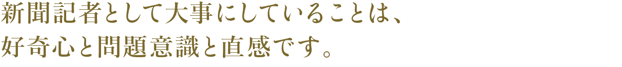 日々人と接する仕事をしているので、日常で大事にしているのは「これは何だろう」という好奇心、「なぜこんなことが起きているんだろう」という問題意識、そして、自分が持っている直感だ。何がニュースなのか、これは正しいのか間違っているのかという判断が必要なため、知識や教養とともに感性も常に問われる。