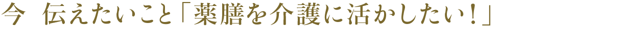 両親達は自宅で過ごし私の介護生活は15年を超えています。現在、夫と私それぞれの母親が90歳を過ぎ超高齢です。義父は95歳で他界しました。薬膳と中医学を学び、家族の顔の明るさや色、反応、食欲や食べ物の好み、皮膚、舌象などを、できる限り観察するようになりました。